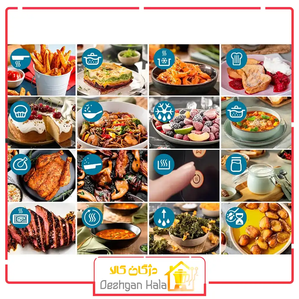 - بیش از ۱۶ برنامه پخت شامل: سرخکردن، کبابکردن، برشتهسازی، گرمکردن، خشککردن و …